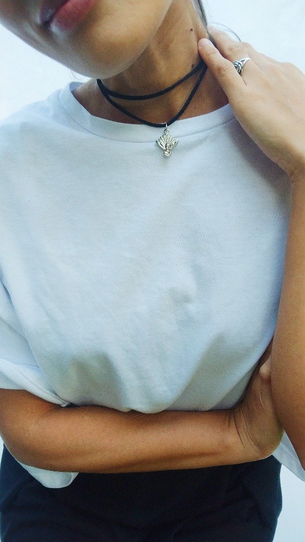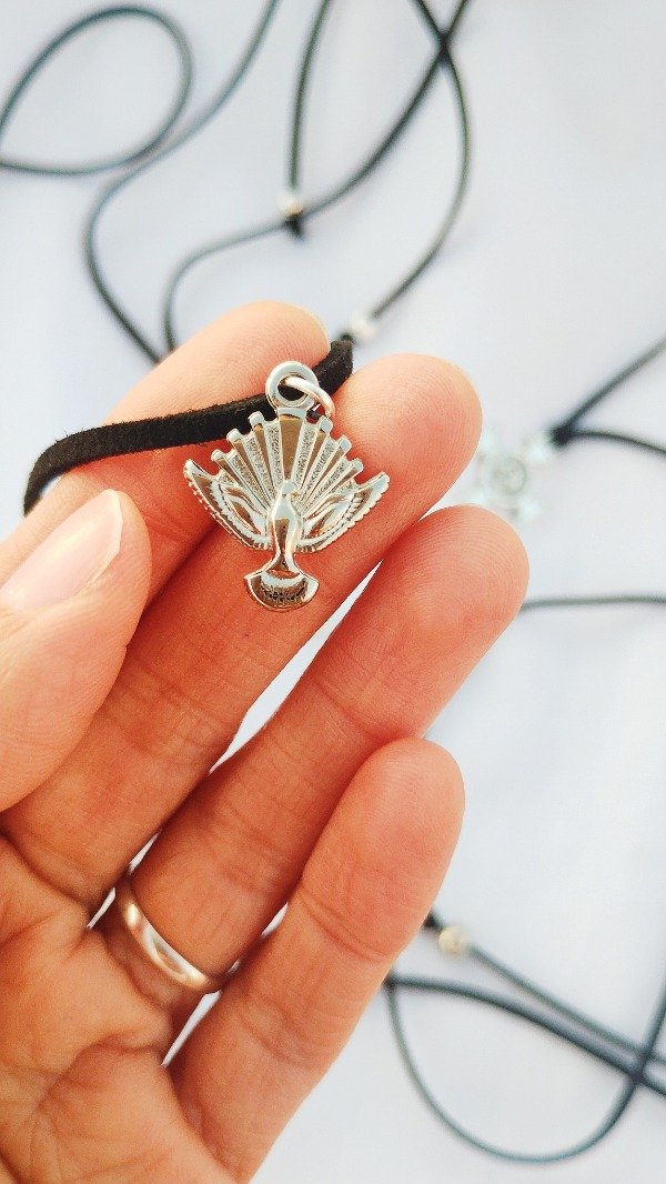 Chocker lazo de gamuza con dije del espíritu Santo de metal de fundición .